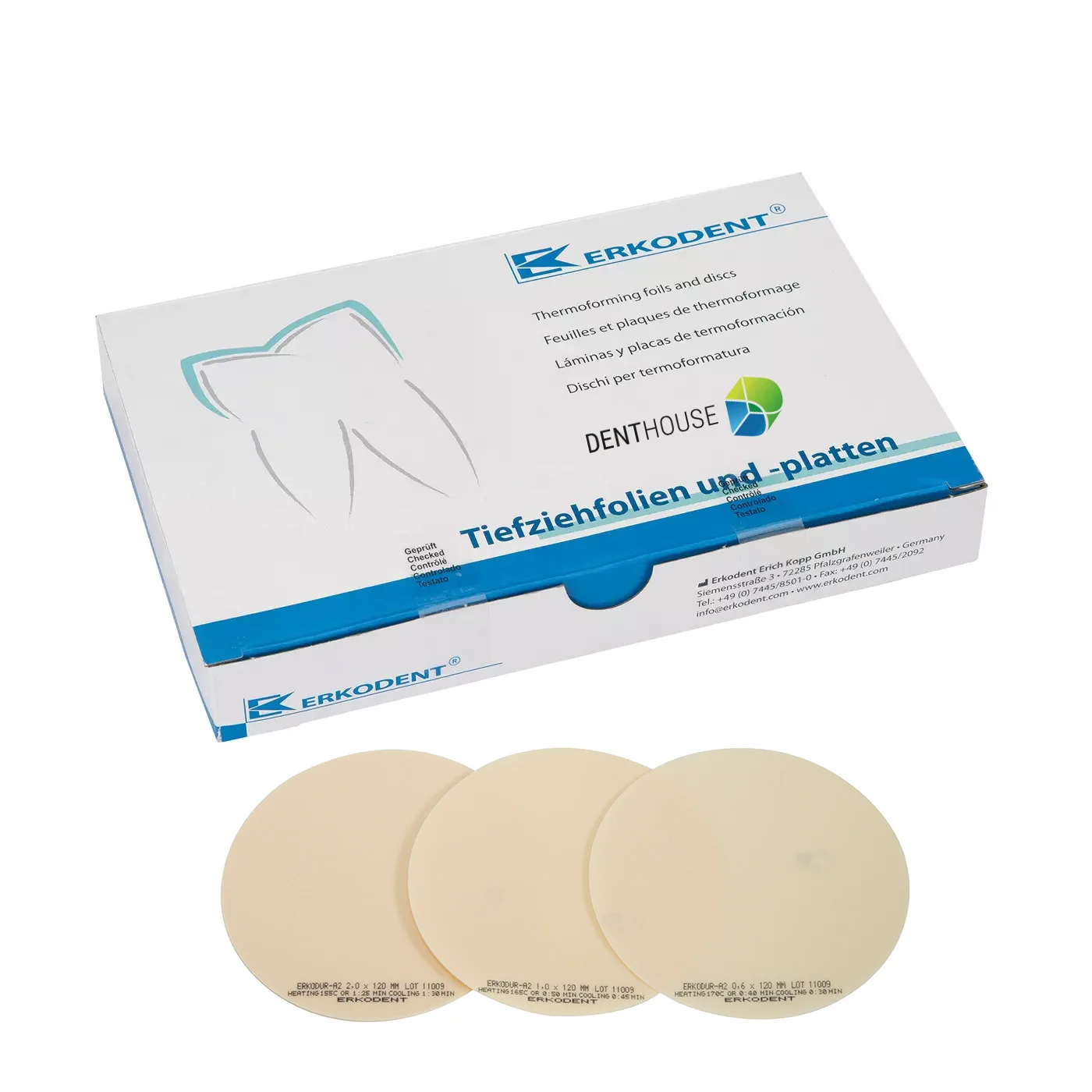 Erkodur är en hård tandfärgad folie i 3 färger!Passar utmärkt till påbitsskenor, provisorier, stabiliseringsskenor, kosmetiska skenor.