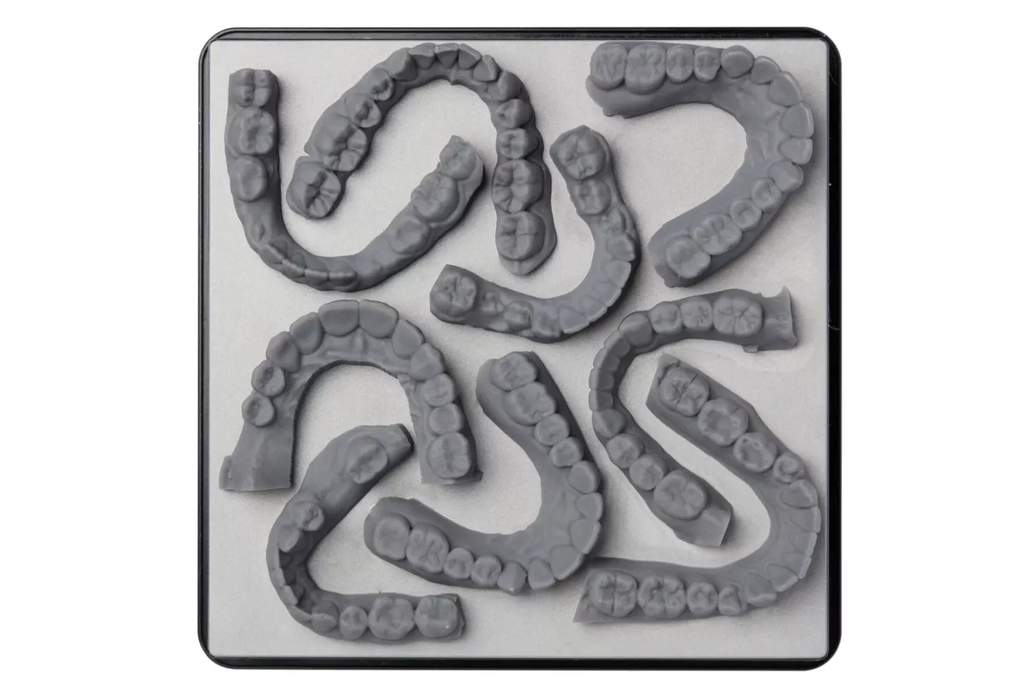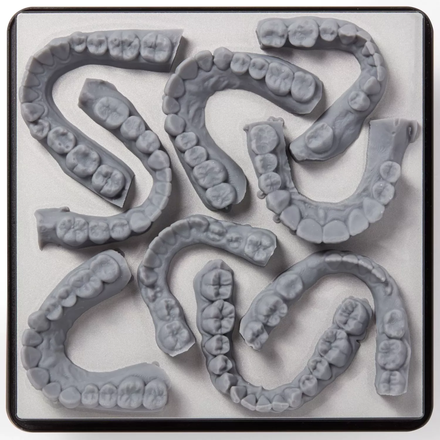 För vanliga modell-printningar är vit standard det rätta valet. Ett hårt akrylatbaserat material som liknar PMMA i egenskaperna och ger mycket detaljrika och jämna ytor, som är mycket lättbearbetat och går utmärkt att måla på.Den släta matta finishen framhäver detaljer exceptionellt bra. Materielet är idealiskt för en mängd olika dentala applikationer, inklusive tandreglering, diagnostiska och pedagogiska modeller, liksom för vakuumpressning av tex bettskenor och blekskenor mm. Helt enkelt ett riktigt snyggt material!