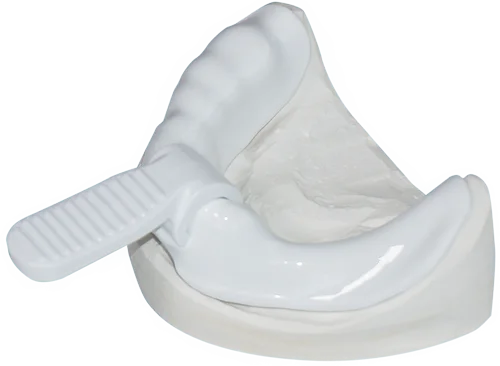 Vita skedhandtag av PLA-plast med platt greppform. Passar som handtag för tillverkning av individuella avtrycksskedar, Erkoplast PLA