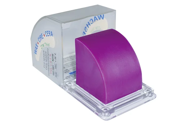 Populärt specialvax med mycket hög smältpunkt vid formpressningför att blockera gipsbubblor. God modelleringsförmåga.Ogenomskinlig lila färg, innehåller titanoxid.